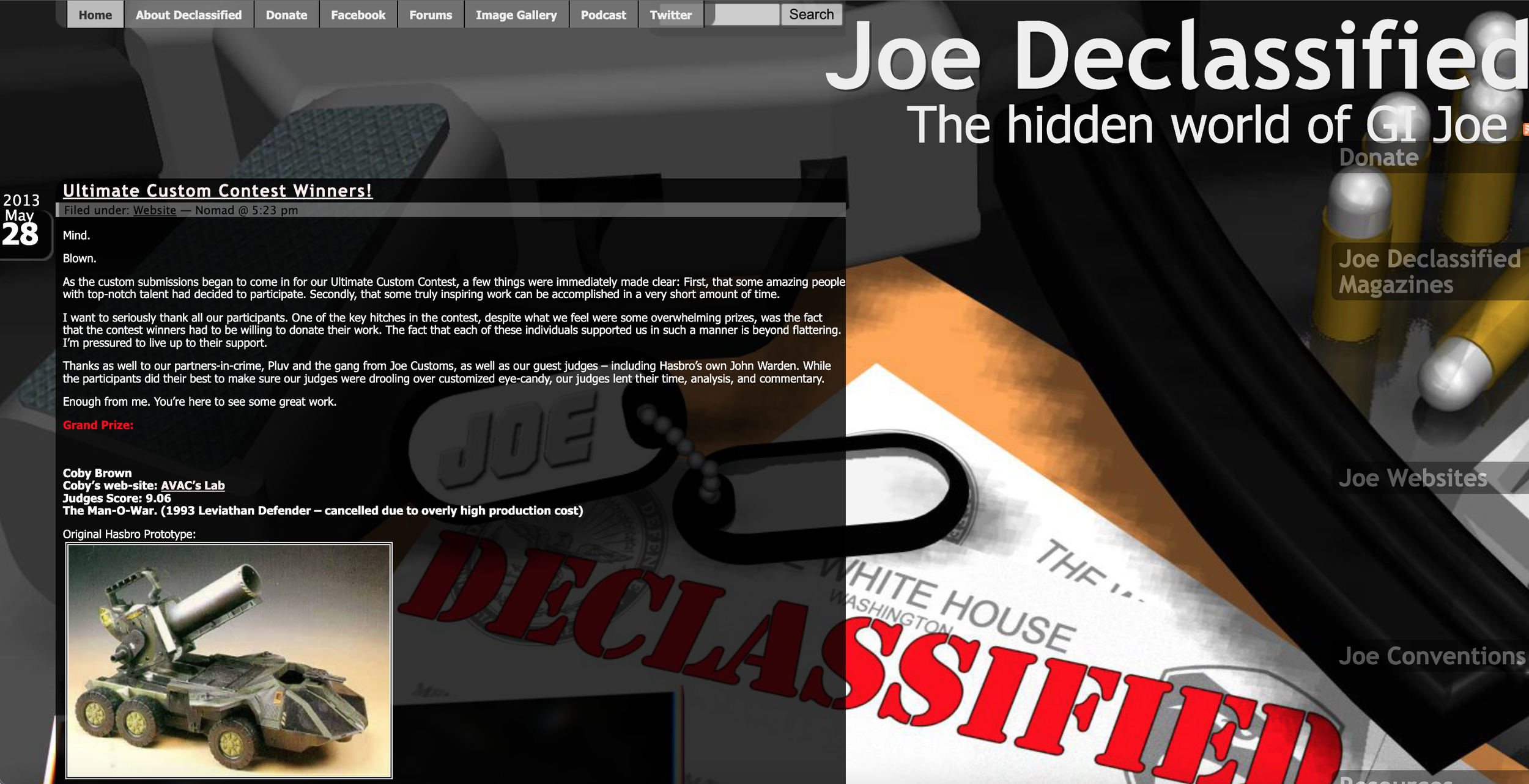 2013 Hisstank.com / Joe Declassified award winner for best recreation of unreleased figures and vehicles of Hasbro’s past. Entry submitted, the unreleased vehicle, The Man O War.