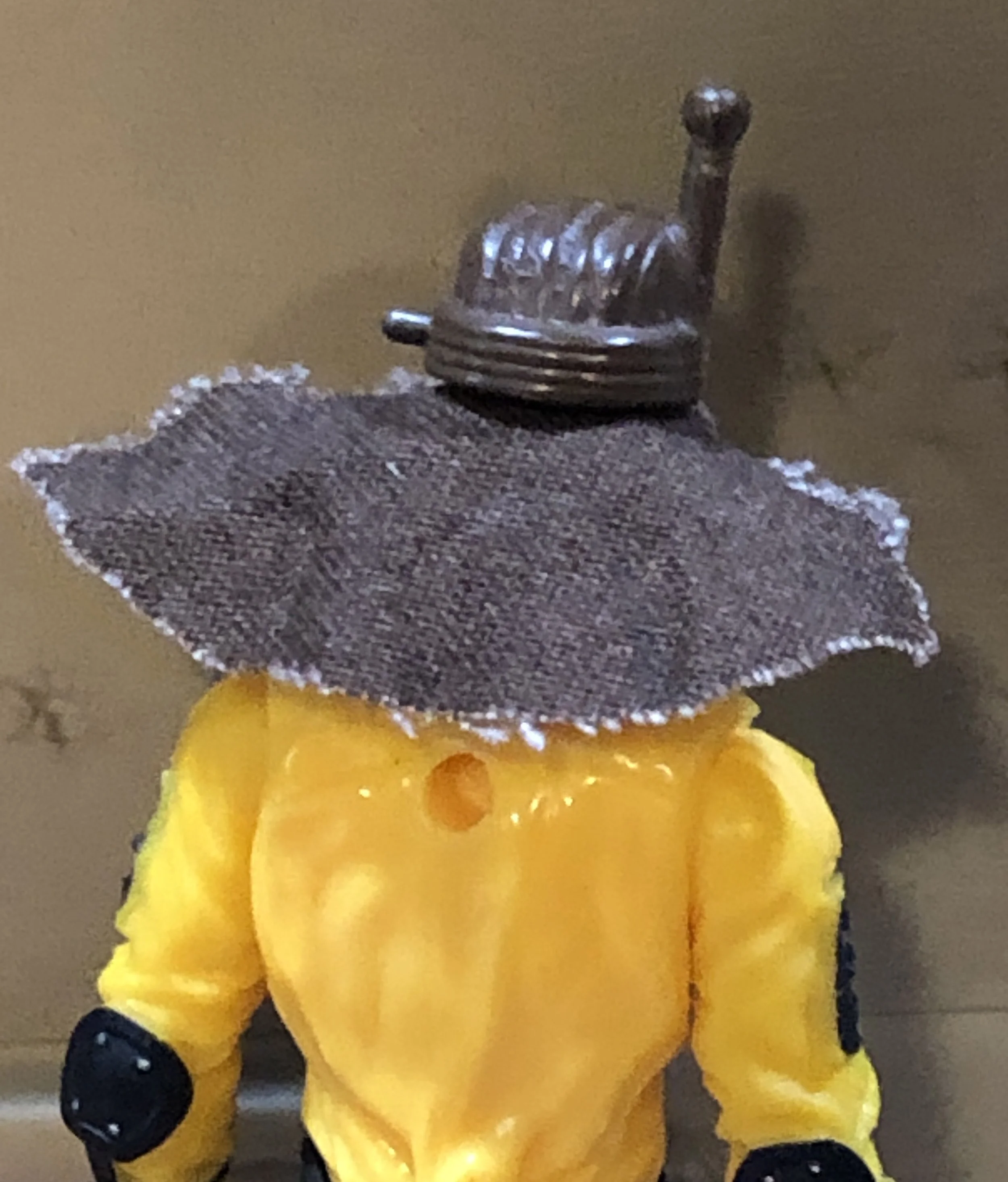Top half of head cast in brown. Bottom Half cast in yellow. Cloth is brown fabric. Color may change due to availability.